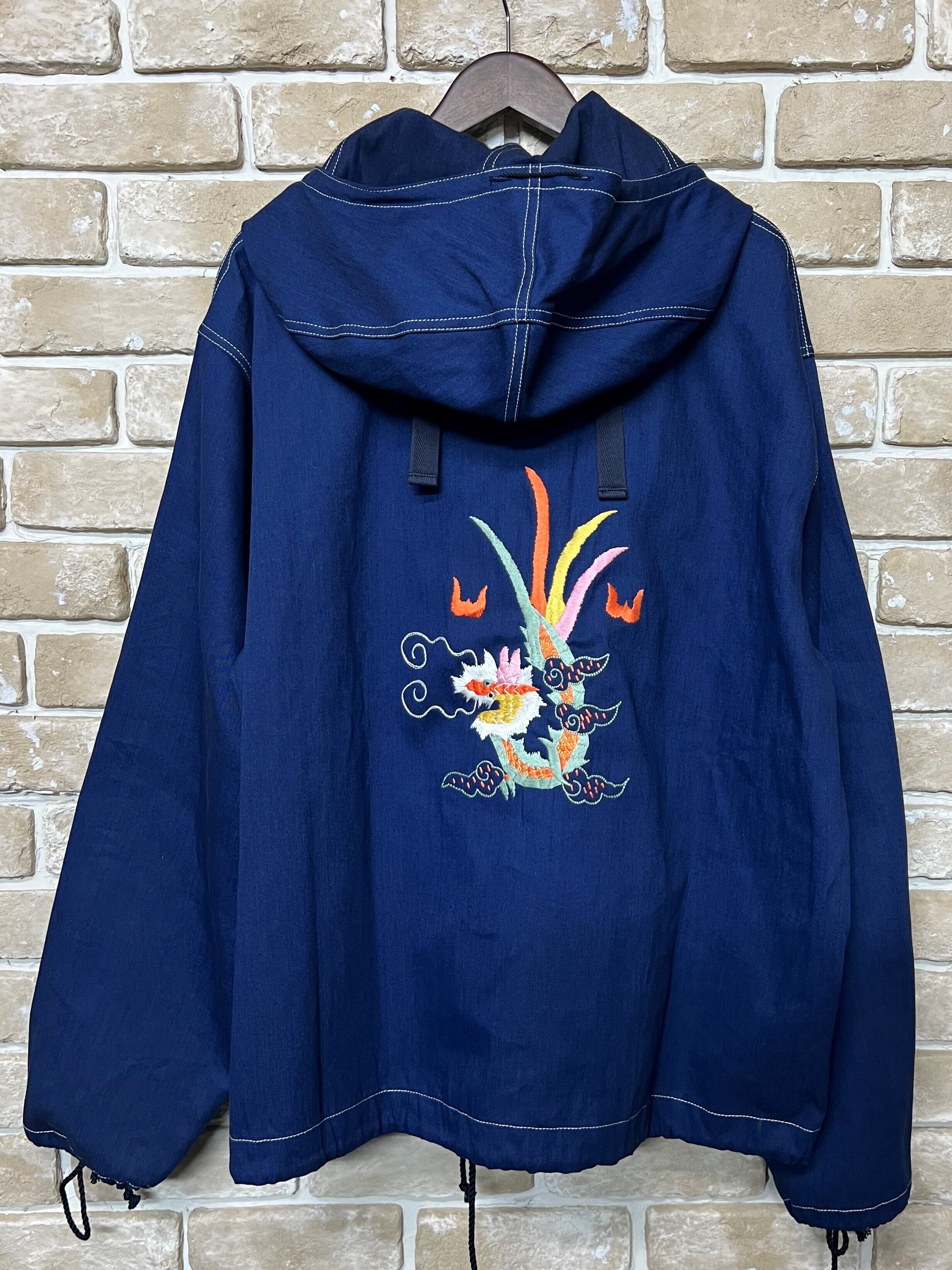 最近では希少となったヴィンテージの“UTILITY SMOCK” 顎まで隠れるデティールが特徴。)ヴィンテージライクな刺繍を入れた、オリジナルティあるサルベージパーカーに仕上げました。